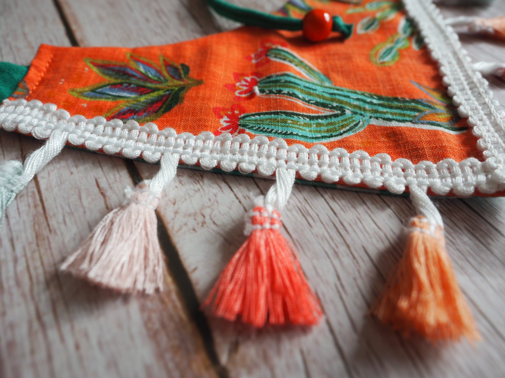 Hinweis: Jedes Bandana ist ein handgemachtes Unikat. Das Design bezüglich Farben, Form und Ausrichtung kann daher, je nach Stoffzuschnitt, von den Bildern abweichen. Sonderwünsche bezüglich des Designs können vor Abschluss der Bestellung in die “Zusatzinfo-Box“ eintragen werden. Wir bemühen uns, euer Anliegen (entsprechend des vorhandenen Inventars an Stoffen, Applikationen etc.) umzusetzen. Eine Garantie bezüglich der Erfüllung von Sonderwünschen besteht nicht.